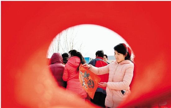 2月4日,由13家甘肃省直单位组成的文化科技卫生“三下乡”惠民服务团来到兰州新区,举行2015年甘肃省“三下乡”集中服务活动,通过开展立春写对联等活动为当地群众送上“惠民大礼”和新春祝福。 (陈斌)