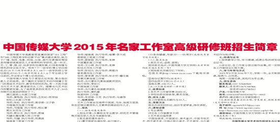中国传媒大学2015年名家工作室高级研修班招生简章
