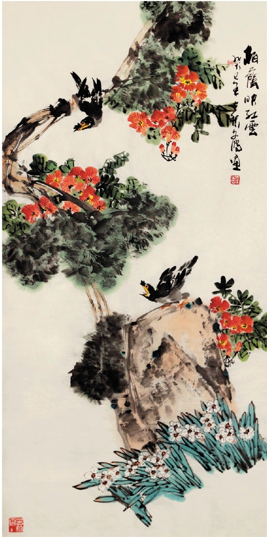 张文波 柏荫映红云 68×138cm
