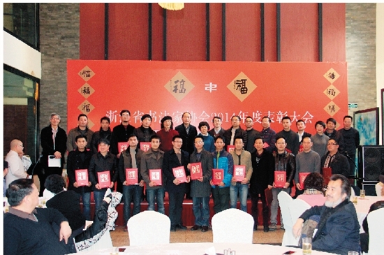 本报杭州讯 通讯员 何涤非 2月8日下午,浙江省书法家协会2014年度表彰大会暨2015年迎春茶话会在杭州金溪山庄举行。