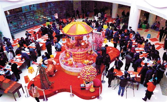 本报无锡讯 阳羡老农 2月8日,江苏省无锡市书法家协会组织40多位参加无锡市书协七届三次理事会的书协理事走进锡山区东港镇红豆影城为群众送“福”送春联,同时赠送100多册书画、民俗类图书给当地文化站。