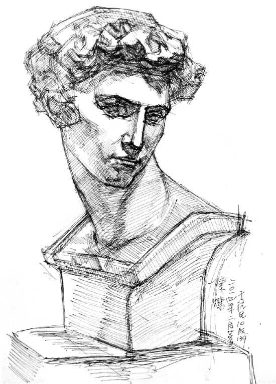 细节刻画。将五官等能体现画面细节和对象特征的局部着重刻画,注意造型转折处的塑造。抓住了转折,就能在二维的平面上表现出三维的立体空间。最后统一调整。