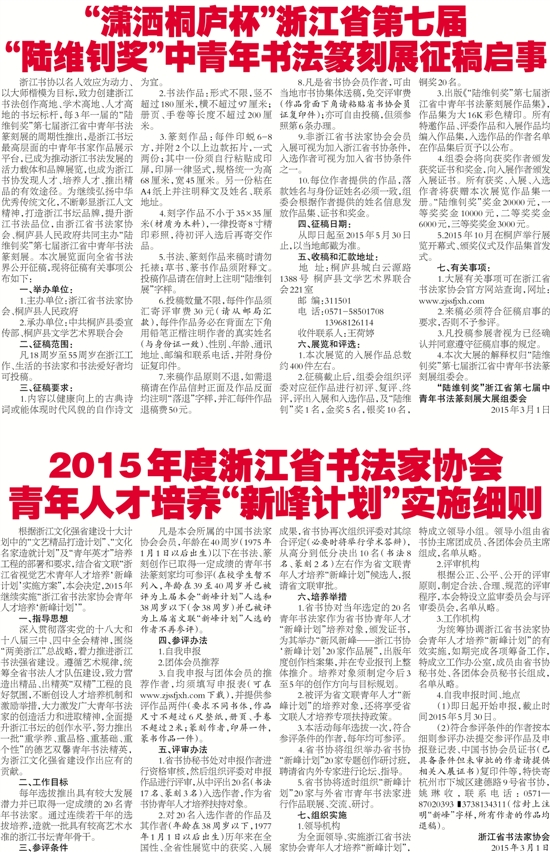 1.大展有关事项可在浙江省书法家协会官方网站查询,网址:www.zjssfjxh.com