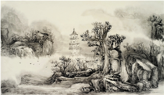 张伟平 参差烟树五湖东 39×66cm 2014年作
