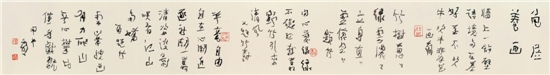 刘云泉 龟居养画 18×131cm 2014年 释文:墙上一饰壁 语境多反差 好花不吹牛 吹牛非好花/竹树葱葱 绿云浓浓 立身直直 虚怀空空/由心爱绿 绿不碍红 栽丛野竹 引来清风/羊毫自由自在 心潮追逐新潮 一丛清姿淡影 笑看江山多娇/云峰搜画 有力爬山 无心攀比 仅为戏玩