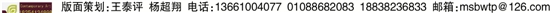 版面策划:王泰评 杨超翔 电话:13661004077 01088682083 18838236833 邮箱:msbwtp@126.com