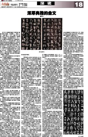 金文是篆书系统中的一朵奇葩,其线条饱满丰腴,点画鲜活,结体端庄。金文是甲骨文的升华,这不仅体现在字体的规范上,更体现在对线条、结体、章法美的诠释上。