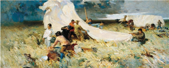 詹健俊 起家 布面油彩 140×348cm 1957年 中央美术学院美术馆藏