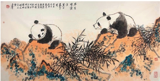 洪世清 熊猫 68×136cm 纸本画心
