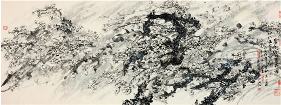 朱祖建 雪剑锋刀百卉凋 冰肌玉蕊斗寒潮 320×85cm