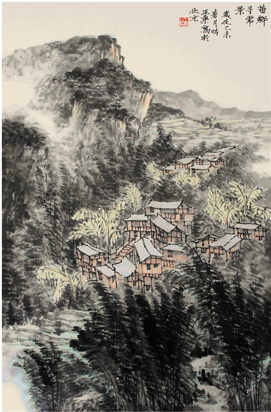王乘 苗乡寻常景 68×47cm 纸本水墨 2015年