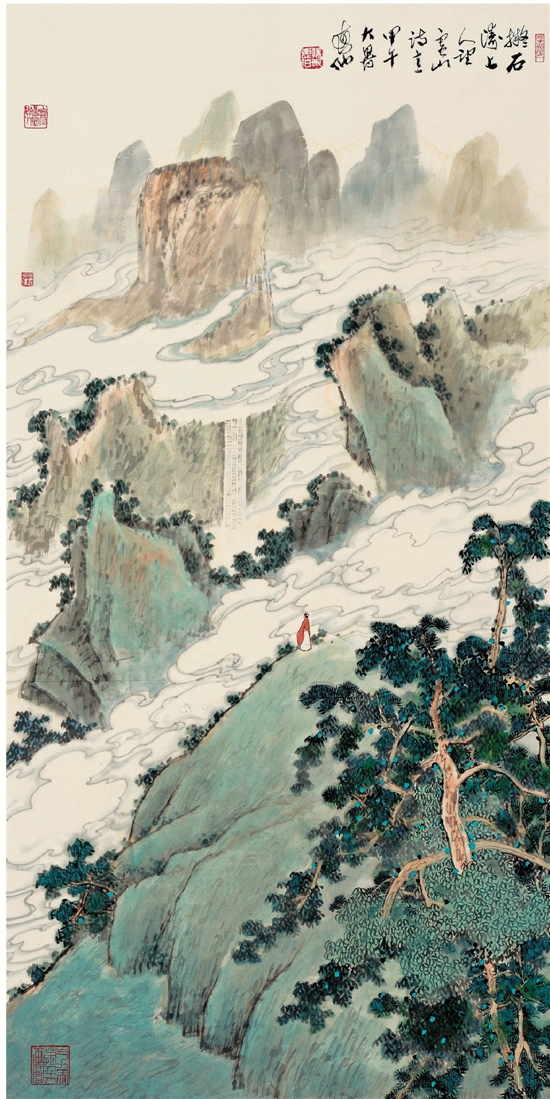 邓惠伯 拟石涛上人 望庐山诗意 69×138cm