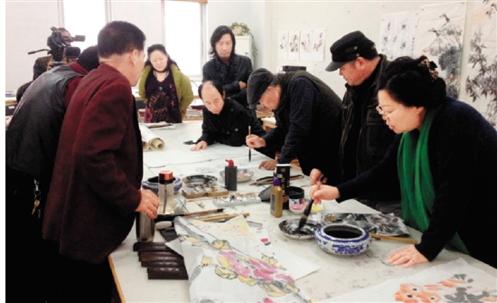 清华大学中国画高研班齐辛民工作室,齐辛民为学员上示范课。