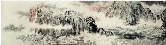 冰川山水长卷(局部) 355×95cm 1987年(陈仕彬23岁作品)