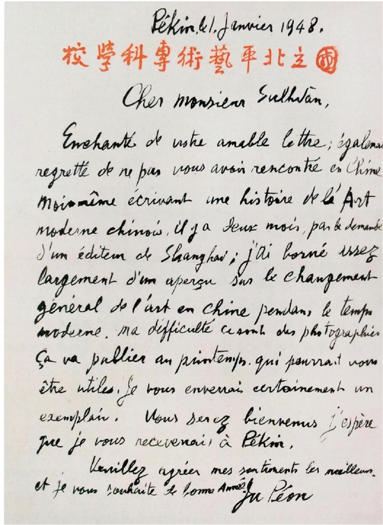 1948年1月北平艺专校长徐悲鸿写给苏立文的信