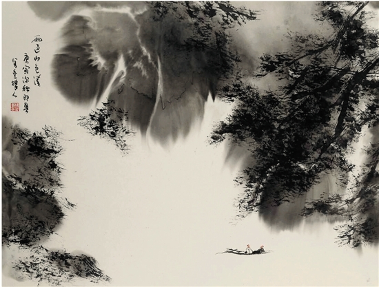 楼柏安 雨过山色清 彩墨纸本 90×68cm 2012年
