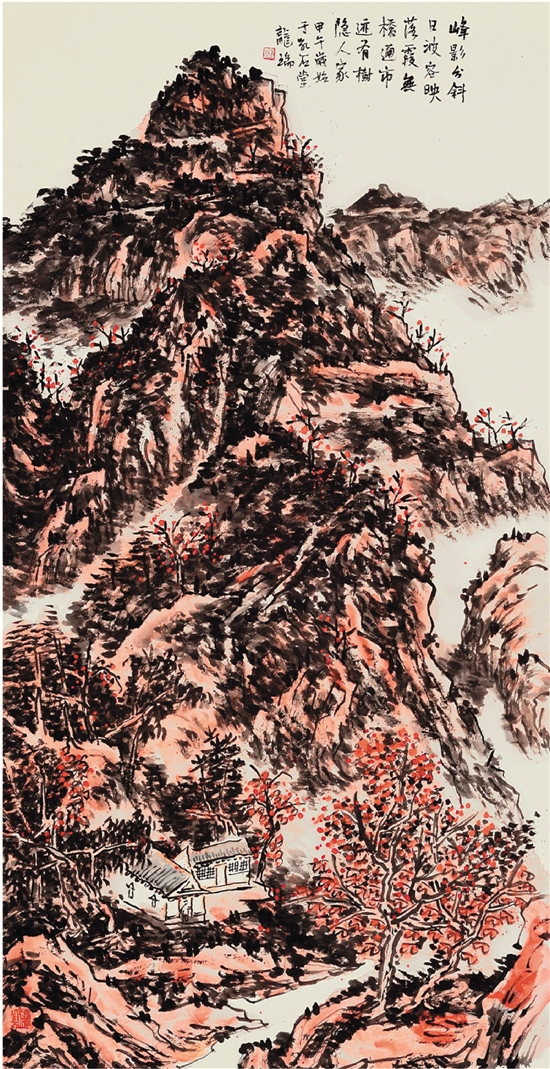 龙瑞 峰影分斜日 彩墨纸本 136×68cm