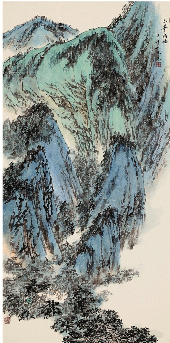 杨惠东 太华幽胜 彩墨纸本 136×68cm