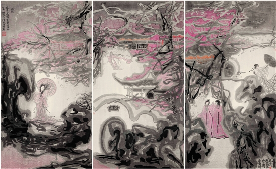 凌君武(苏州版画院) 苏州园林、昆曲—世界文化遗产的新颜版画 180×90cm×3