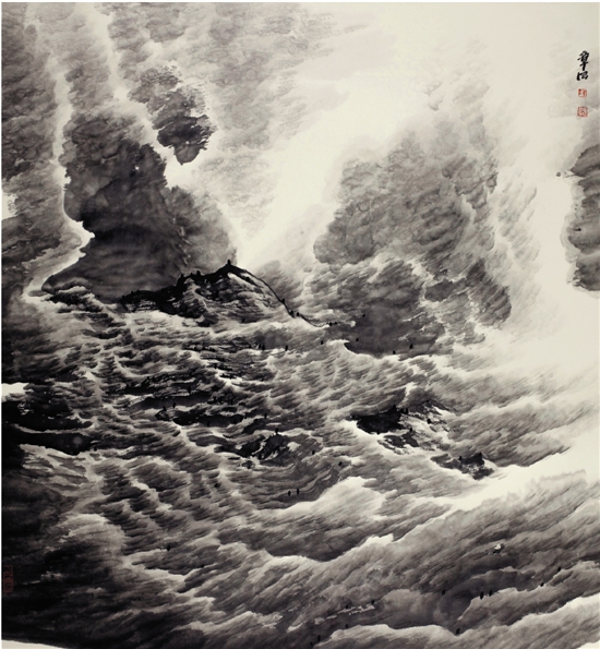 钟章法 碧海云天夜夜心 100×90cm 时空水墨画
