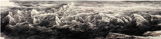 钟章法 神秘的珠穆朗玛 400×100cm 云海山水画