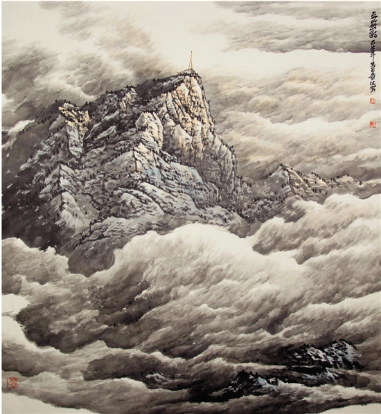 钟章法 云山放歌 100×90cm 云海山水画