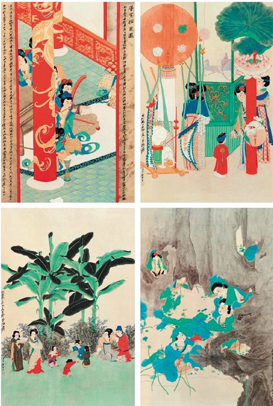 糜耕云 临张大千春灯采莲戏婴按乐四图