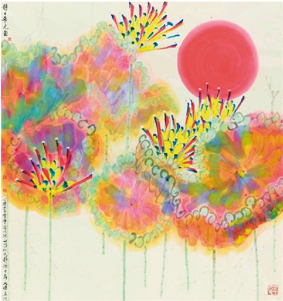 释大禅 静日荣光图 设色纸本