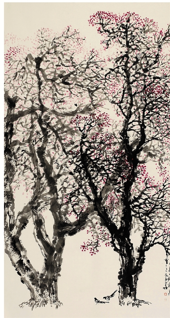 钱彩连 双杏图