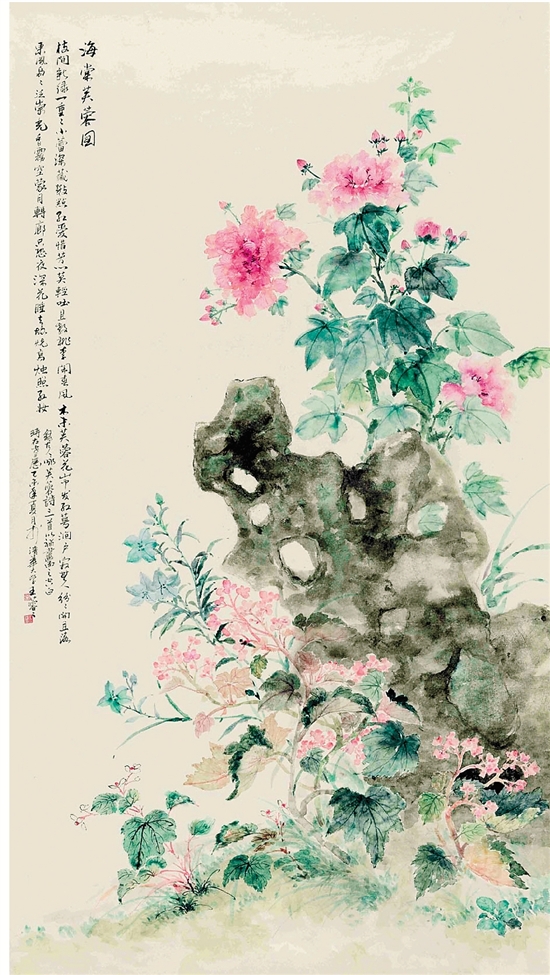 王蓉蓉 海棠芙蓉图 178×96cm