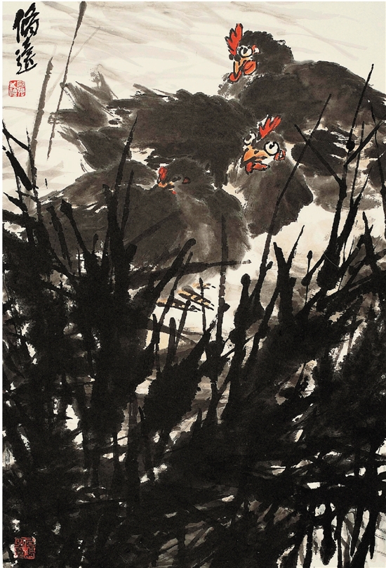 陆国强 芦草鸡 水墨纸本 100×69cm 2014年