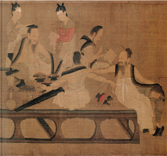 北齐 杨子华创稿 唐 阎立本再稿(宋摹本) 北齐校书图(局部) 绢本设色 27.6×114cm 美国波士顿美术馆藏