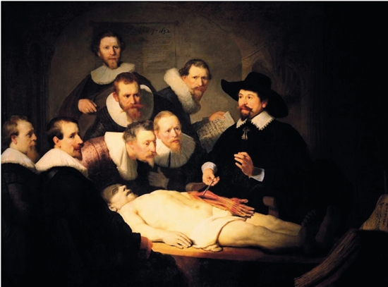 伦勃朗 尼古拉·丢尔普教授的解剖学课 169.5×216.5cm 1632年
