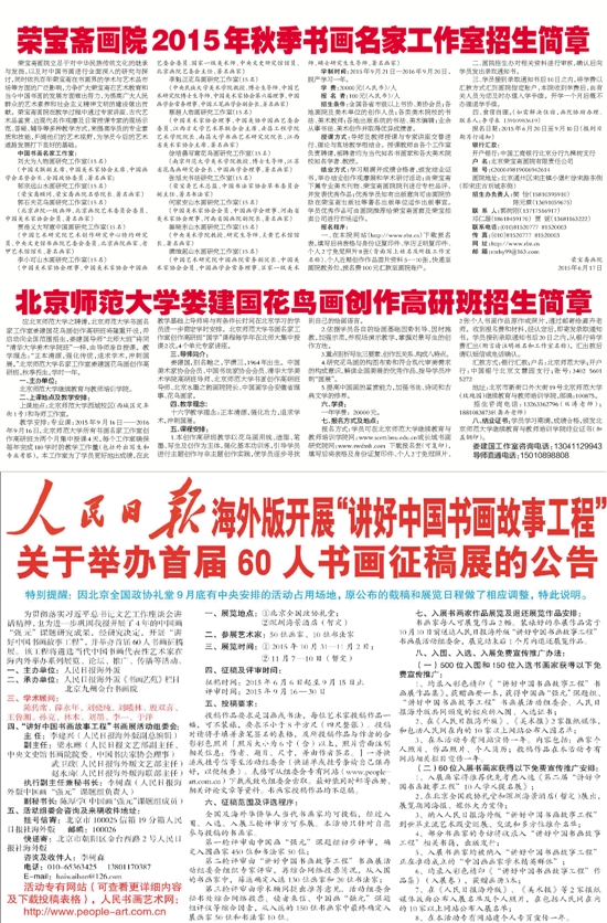 荣宝斋画院2015年秋季书画名家工作室招生简章