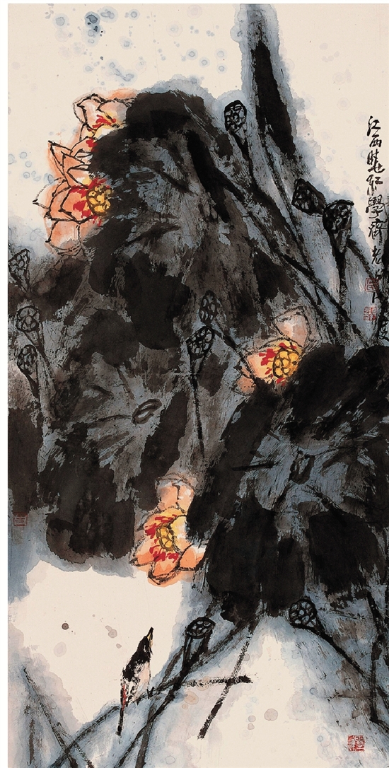 石晓红 别样墨荷 136×68cm