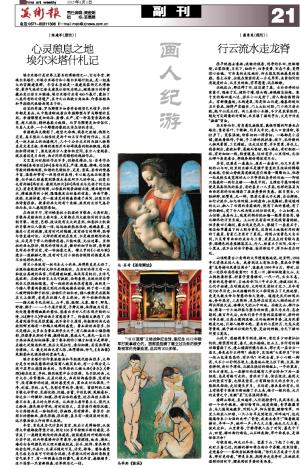 文艺复兴时期的作品不多,但都是精品,达·芬奇作品有两幅《圣母丽达》和《圣母与花》,严谨、深邃、精确,近似数学般的精确构图,和谐的色调组合,完美、崇高,圣母的情感丰富,温柔却带有一丝悲伤的表情,专心致志地注视着圣婴,似乎她已经感觉到婴孩未来坎坷不凡的命运。拉斐尔也有两幅《玛丽亚·康斯尼坦比》和《玛丽亚与无胡子的尤细夫》,前者是圆形构图,以轻盈的线条描绘丘陵,镜面般的湖水,精致挺秀的小树,隐隐散发出初春的信息。画面宁静、淡雅,充满诗意,有一股清灵的情感弥漫于画间,拉斐尔的画诗意很浓。提香的画大约有十来幅,浓烈的生活气息扑面而来,让人感到很亲切。