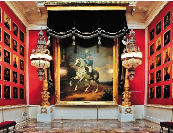 “1812画廊”又称战争纪念馆,是纪念1812年俄军打败拿破仑的。画廊里挂满了建立过功勋的俄罗斯将军的肖像油画,总共有300多幅。