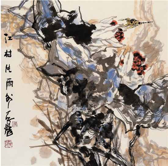 谢天赐 江村片雨外 68×68cm 彩墨纸本
