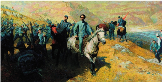 汤沐黎 转战南北——抗战中的毛泽东与周恩来 118×232.2cm 1977年