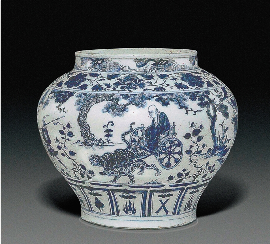青花鬼谷下山图罐 元代 高27.5cm 直径33cm 私人收藏
