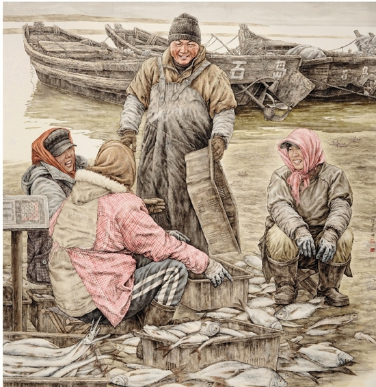 刘坤 渔歌唱晚 获美丽新丝路翰墨定西行全国中国画油画展优秀奖