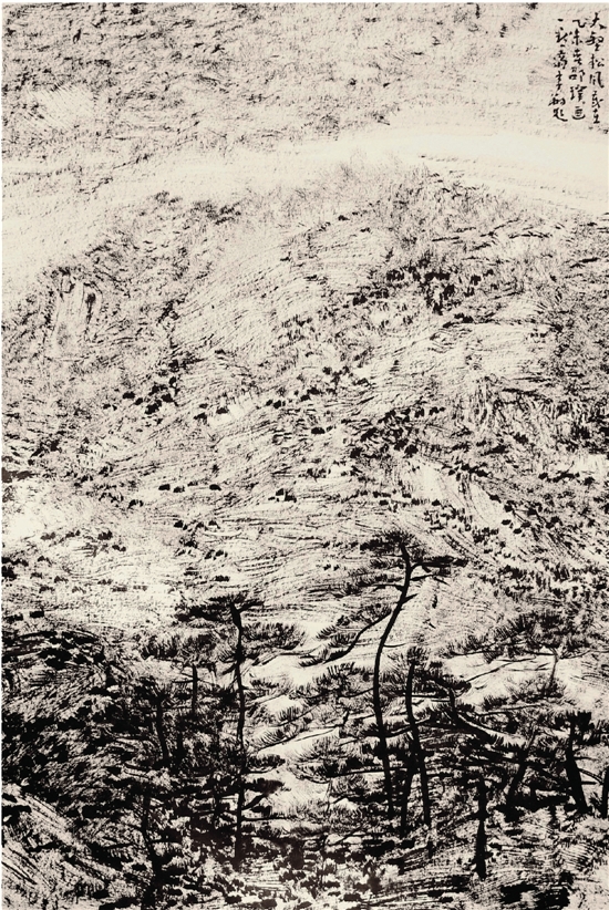 ▲邵璞 大壑松风 焦墨 李翔题字 65×39cm 2015年