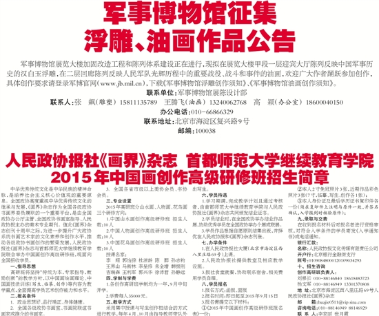 地 址:北京市海淀区西八里庄路69号人民政协报社《画界》杂志