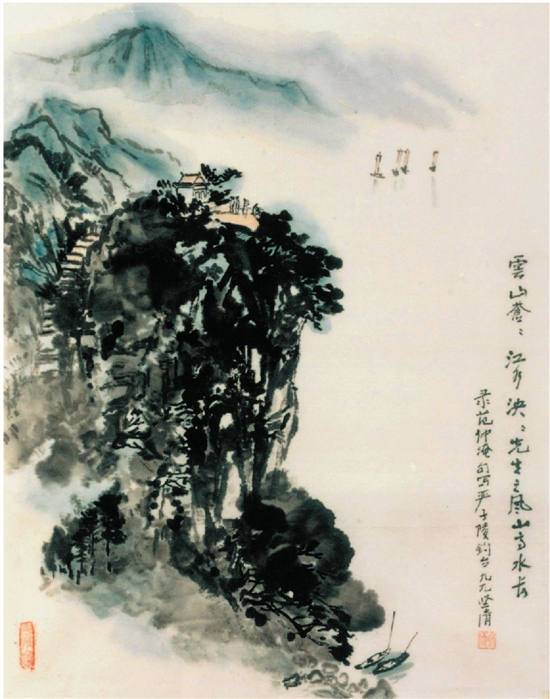 劳坚清 严子陵钓台 纸本水墨 58×46cm 1999年