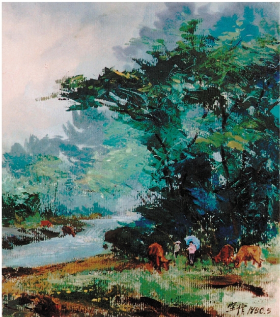 劳坚清 雨后放牧 水粉 39×34cm 1980年