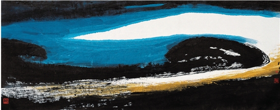 周韶华 碧海银光 纸本水墨 144×365cm 1998年