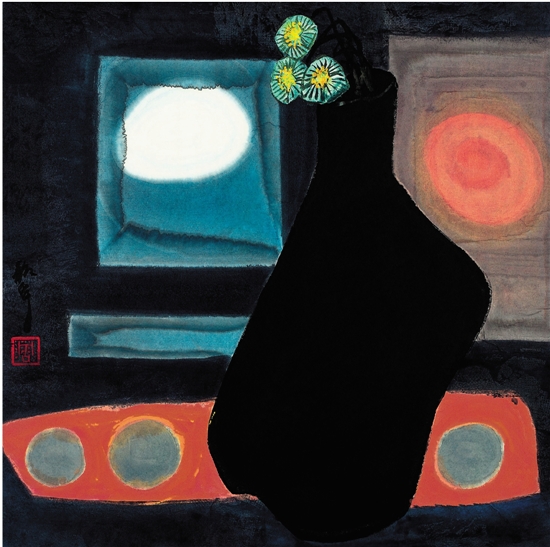 周韶华 半坡清晖 纸本水墨 68×69.5cm 2002年