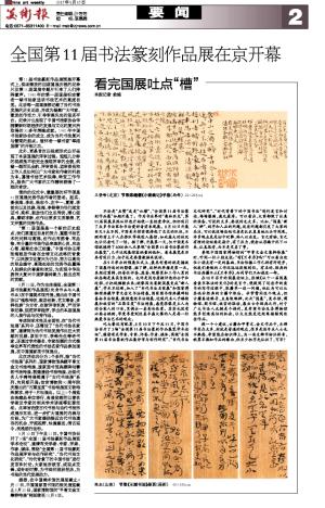 吃大餐还有配菜,8月10日下午及11日,中国书协召开了3场“全国第11届书法篆刻作品展览学术论坛”,邀请有关学者、专家、评委、作者、媒体,围绕“全国第11届书法篆刻作品展评审与创作研究”、“当代书法文化研究”、“时代背景下的中国书法”进行发言和讨论,场场爆满,座无虚席。可以看出,大家都做了认真的准备,可说的太多,要说的也太多。比如,“国展‘新人’辨”、刻字和人品的问题,这些问题都引发了大家的关注,可以说这场论坛记者是认认真真地从头听到尾,许多观点更是切中时弊,给人以启发。言之有物,言之有理的论坛要定期开,有了压力,便会从浮躁中沉下心来,认真思考,而不是交差了事。