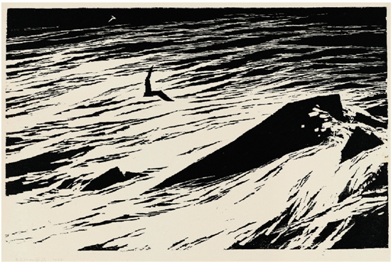 张怀江 不平处的激流 黑白木刻 44×70cm 1985年