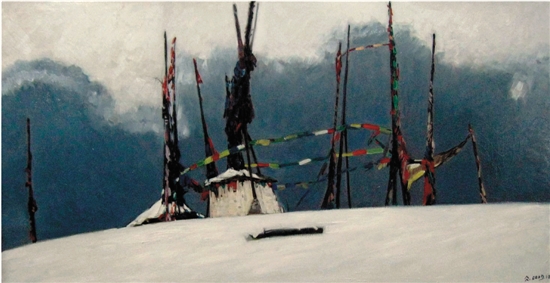 凌宇冰 雪域·经幡(油画) 80×150cm 2009年